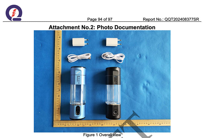 Denna certifiering bekräftar att vår flaska producerar en stabil och terapeutisk nivå av H₂, utan skadliga biprodukter. Ett kvitto på att du får en produkt som är både effektiv och säker att använda.